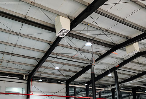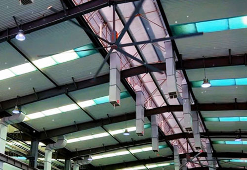 3.空間利用與美觀性,工業(yè)大風(fēng)扇安裝于室內(nèi)屋頂下的高空之上,不占用任何地面、墻體面積,非常節(jié)省空間,且美觀、大氣,扇機(jī)組合無(wú)需在建筑屋面或墻體上進(jìn)行大規(guī)模的改造和開孔,不會(huì)破壞建筑的原有結(jié)構(gòu)和外觀,有利于保持建筑的安全性和美觀性,特別適用于對(duì)建筑屋面承重安全性、空間美觀性有要求的大型室內(nèi)生產(chǎn)工作場(chǎng)所。